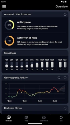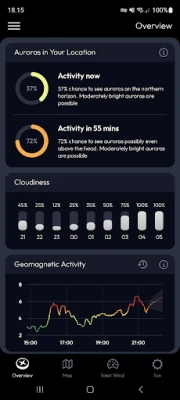 Zamislite da svedočite nebeskom plesu aurore borealis – prizor koji oduzima dah. Sada, sa lakoćom uhvatite taj magični trenutak, bez propuštanja! Ova sveobuhvatna aplikacija je vaš lični vodič kroz noćno nebo, pružajući vam ključne informacije da neprekidno pratite kada će se aurora pojaviti. Zahvaljujući preciznim obaveštenjima o aurori, sa mogućnošću filtriranja po oblačnosti, uvek ćete znati kada su uslovi idealni za spektakularan prikaz. Takođe, budite u toku sa trenutnom i prognoziranom verovatnoćom aurore direktno za vašu lokaciju, osiguravajući da ste uvek na pravom mestu u pravo vreme.