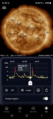 Ne idemo samo korak dalje, već smo uronili duboko u kosmičke podatke. Pristupite geodetskim aktivnostima u skoro realnom vremenu, prikupljenim sa preko 110 magnetometara širom sveta, što vam daje neviđen uvid u magnetno polje Zemlje. Za entuzijaste solarnih dešavanja, tu je napredni preglednik solarnih slika, obogaćen x-ray grafikonom i detaljima solarnih regiona, omogućavajući vam da pratite aktivnost našeg Sunca kao nikada pre. Planiranje posmatranja je jednostavno uz alat za tamu, koji precizno pokazuje kada će nebo postati dovoljno tamno da se zvezde i aurora najbolje vide, uklanjajući svaku dilemu oko tajminga.