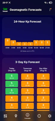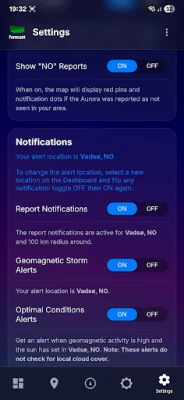 Nikada više nećete biti iznenađeni! Uz obaveštenja uživo prilagođena vašoj lokaciji, Aurora Forecast vas upozorava na prijavljena viđenja aurore od strane zajednice, početak geomagnetne oluje ili kada uslovi postanu optimalni nakon zalaska sunca. Interaktivna mapa izveštaja u realnom vremenu omogućava vam da vidite šta drugi primećuju, prikazujući anonimne "DA" i "NE" izveštaje iz vaše okoline. Vaš doprinos takođe pomaže drugima! Sa jednostavnom, bojama označenom kontrolnom tablom, odmah ćete razumeti ključne uslove aurore i vremena, sada sa uključenom NOAA legendom za još jasnije tumačenje.