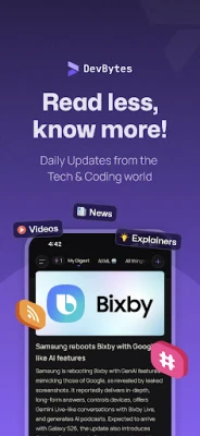 Uz DevBytes, dobijate munjevite informacije o najnovijim tehnološkim trendovima: od novih programskih okvira i popularnih GitHub repozitorijuma do proboja u veštačkoj inteligenciji. Nema više beskonačnog skrolovanja – samo esencijalno. Ali DevBytes ide dalje od vesti. Pronađite detaljne analize koje vas teraju na razmišljanje poput iskusnog seniora – arhitektonski obrasci, skalabilnost i sistemski dizajn, sve ono što zahteva dublje razumevanje. Praktično učenje je ključno; zato DevBytes nudi tutorijale i demonstracije koje možete pratiti i kodirati uz njih. Vidite, naučite, primenite – jer samo čitanje često nije dovoljno. Izazovi kodiranja u DevBytes-u su osmišljeni da treniraju vaš mozak, a ne vaše strpljenje, nudeći stvarne probleme sa rešenjima korak po korak. A kada vam zatreba pomoć, DevBot, vaš AI asistent, je tu da objašnjava delove koda, pomaže u debagovanju i podiže vašu produktivnost – kao personalizovani AI partner u kodiranju.