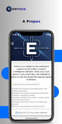 Enticia : Assistant IA je vaš pametan i besplatan AI asistent, pokretan najboljim modelima veštačke inteligencije. Pruža brze i precizne odgovore za mnoštvo zadataka. Poboljšajte produktivnost, podstaknite kreativnost, dobijte personalizovane zdravstvene savete, analizirajte slike i lako prevodite, preformulišite i sumirajte tekst.