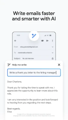 Gmail je mnogo više od samog sandučeta; on je centralni deo Google Workspace-a, dizajniran da transformiše način na koji vi i vaš tim sarađujete. Povezujte se sa kolegama preko Google Meet-a ili Google ćaskanja, šaljite pozive iz Kalendara, dodajte zadatke na listu – sve to bez napuštanja Gmail okruženja. Iskoristite inteligentne predloge poput Pametnog odgovora i Pametnog pisanja, kao i gramatičke sugestije i automatske podsetnike, kako biste efikasno upravljali radnim obavezama i oslobodili vreme za važnije zadatke. Dodatno, bezbednost ostaje prioritet, sa našim modelima mašinskog učenja koji i dalje blokiraju preko 99,9% pretnji. Povežite Gmail sa svojim Wear OS satom, dodajući indikator i pločicu za brz pregled mejlova i direktno odgovarajte na pozive iz Google kalendara, direktno iz aplikacije.