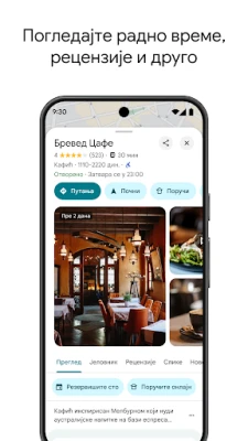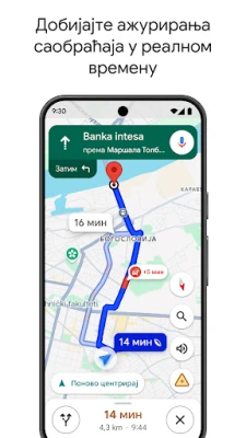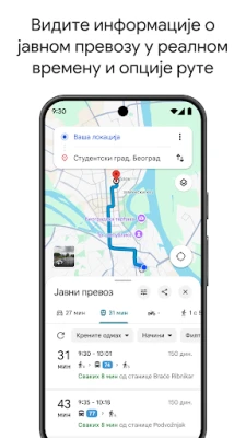 Google мапе омогућавају самоуверено истраживање света. Уз податке о саобраћају уживо и GPS навигацију у реалном времену, лако пронађите најбоље руте за вожњу, ходање или јавни превоз. Откријте милионе предузећа, ресторана и места са сликама и рецензијама.