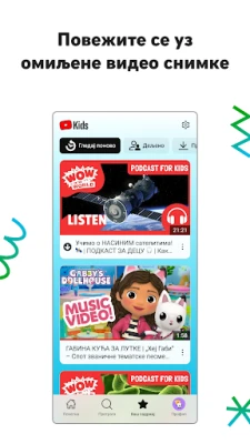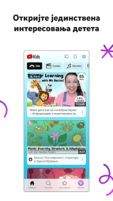 Uz YouTube Kids, deca bezbedno istražuju video sadržaj koji vole i kojem roditelji veruju. Inspirišite ih da otkriju jedinstvena interesovanja, oslobode maštu i razviju samopouzdanje. Personalizujte profile i omogućite im da se razvijaju sopstvenim tempom u bezbednom okruženju osmišljenom baš za njih.